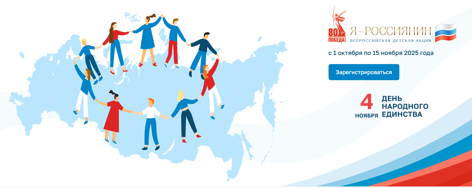 Учащиеся нашей школы приняли участие во Всероссийской детской культурно-просветительской акции «Я — россиянин» приуроченной ко Дню народного единства. Акция создана для того, чтобы развивать общую культуру школьников, формировать общероссийскую гражданскую идентичность, прививать любовь к Родине, воспитывать уважение к представителям разных народов, проживающих на территории Российской Федерации и приверженность российским традиционным ценностям